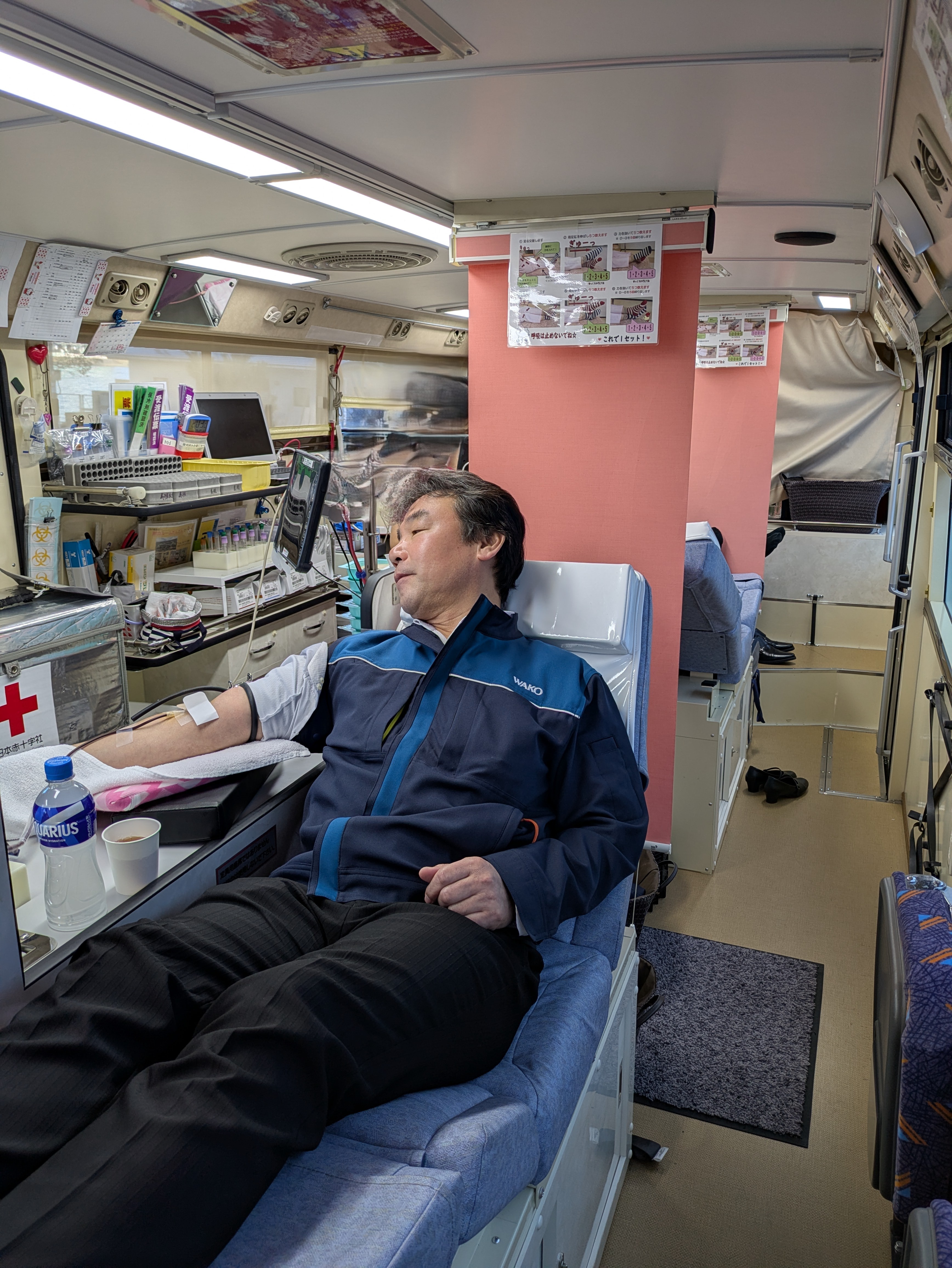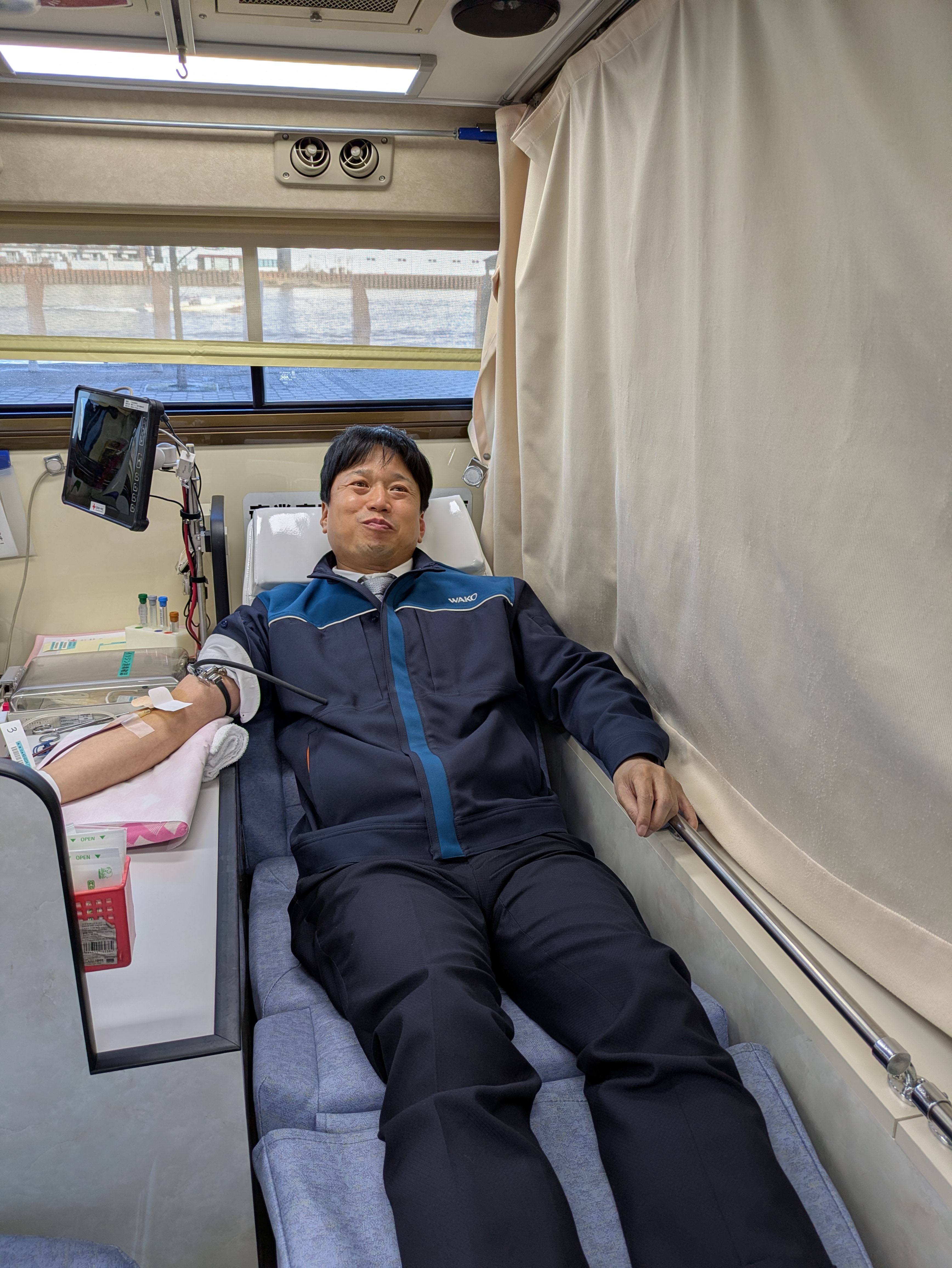 12月23日にグループ会社の和幸本社前に献血バスがこられるということで当社からも数名協力しました。